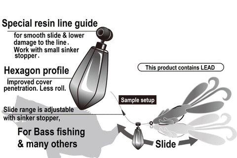 A sinker made exclusively for Texas-style free rigs, the Decoy DS-9 TX-DAN Sliding Sinker features an innovative rubberized line guide to protect your line from damage and prevent the sinker from getting stuck on the knot after extended use. Made from a highly dense lead compound with a 6-sided hexagonal shape, this unique sinker provides tons of sensitivity and suppresses rolling to provide the angler with incredible feel and an improved hold on the bottom. Finished in a gunmetal color with a swiveling line guide to reduce twists, the Decoy DS-9 TX-DAN Sliding Sinker is simply the best free rigging weight for Tex-posed presentations.Made exclusively for Texas-style free rigsRubberized line guideHighly dense lead6-sided hexagonal shapeGunmetal colorSwiveling line guide