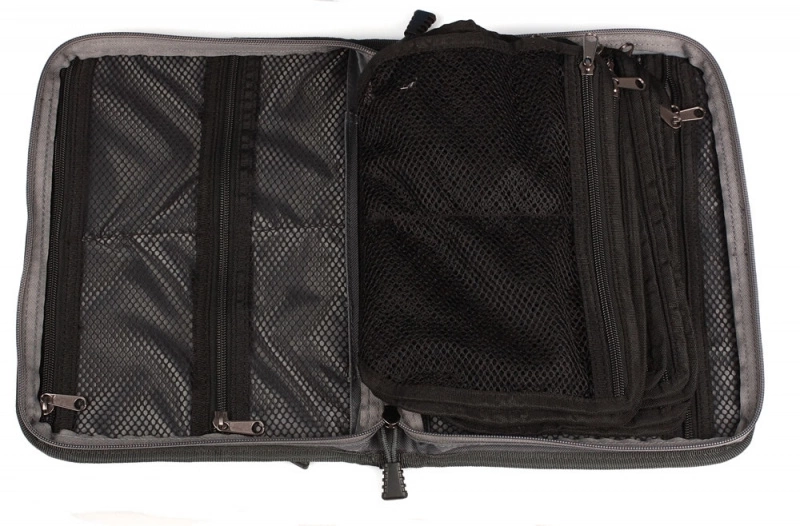 This solutions offers good ventilation for your used and wet heads and extends the life of them considerably. There is a total of 20 pockets split into two individually removable sets of 10 each. These are attached with Velcro in the back of the cover and can be removed and carried separately in your vest or in your back pack if needed. There are also separate, zippered mesh compartment for storing leaders, spare Tips and other small items.