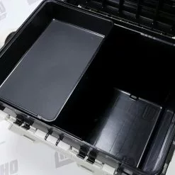 This large, durable, plastic box can hold all of your fishing tackle and equipment and even doubles as a seat when you’re waiting for that fish to bite. The Bucket Mouth has a convenient, easy to cary, handle that makes transportation a breeze. This box features two hinges on the lid that allow the lid to be lifted from either side of the box, or to be completely removed if needed. It even has a removable tray that rests inside the box for additional storage!- Made From Black And Gray Polypropylene Plastic- Two Strong Flip Latches Keep Lid Closed- Comfortable Carrying Handle- Removable Sliding Tray Included- Hinged Lid Can Be Completely Removed- Outside Dimensions 475 x 335 x 320 mm- Inside Dimensions 383 x 281 x 286 mm- Weight 2.85 kg