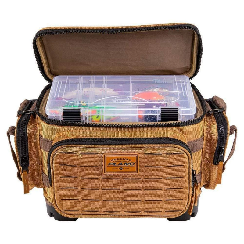 The Guide Series Tackle Bag (3600) features hard-backed 169 Denier fabric that will hold its color and shape for years. Additional upgrades include laser-cut MOLLE attachment points; redesigned pocket configurations for improved access and comfort; oversized zippers that open with ease; and an all-new TPR molded base with extra rigidity and gripping power.Patent-pending magnetic Dropzone™ locks lures and pliers on lidLarge interior holds (5) 3600 StowAway® utility boxes2 handled slip pockets double as additional carry optionFront compartment includes waterproof pouch