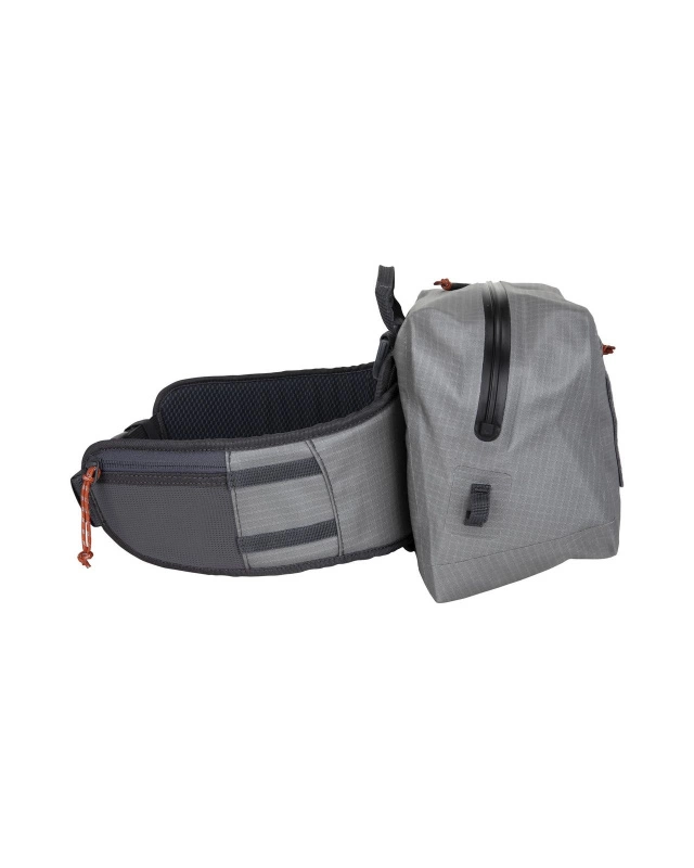 TRU® Zip waterproof self-healing zipper for 100% waterproofsubmersible protectionInterior stretch mesh storage pockets, exterior lash points, and built-in easy-access tool storageFully cushioned waist belt with breathable, water-resistant foamThe shoulder strap with a D-ring for net attachment and waist strap are both removableExterior features include Hypalon lash points for attaching a rod tube or piece of outerwear and a removable fly patchCapacity: 8LDimensions: 22 x 32 x 10th 7cm // (8.5”H x 12.5”W x 6.5”D)