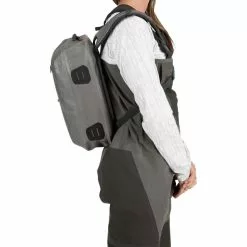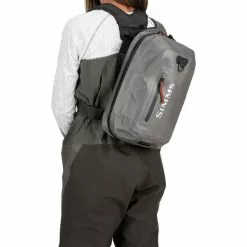 TRU® Zip waterproof self-healing zipper for 100% waterproofsubmersible protectionIntegrated net sleeve on the front face with D-RingCompression-molded hydrophobic back panel and breathable padded shoulder strap with tool attachment port.Water-resistant exterior pocket for quick access to key itemsSimple internal organization includes one large pocket and two stretch mesh pockets with a key clipExterior Hypalon lash points for attaching a rod tube or piece of outerwearCapacity: 12LDimensions: 38 x 24 x 10cm // (15”H x 9.5”W x 4”D)