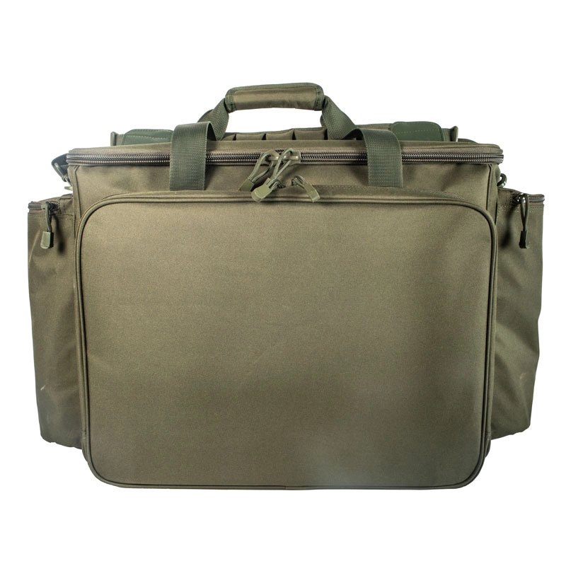 The SB PRO CARRY ALL is the ultimate functional fishing bag. Large capacity main section and 3 handy exterior pockets. • Dim: 63x38x38cm• Weight: 1410g• Main compartment • 2 side pockets • 1 double zipped front pocket • 1 handle joined with Velcro • 1 padded shoulder strap • Anti-stain resistant base