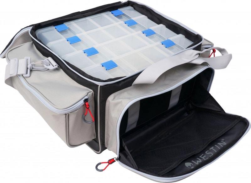 54 x 40 x 25 cmMaterial: 660D/210D Diamond Pattern Polyester with coating4 deep boxes (36 x 22 x 8cm) includedWater resistant materials2 large side pockets for tools and accessories1 large front pocket with interior mesh pocketPadded carry handle and removable padded shoulder strapReinforced and water resistant bottomOversized zipper